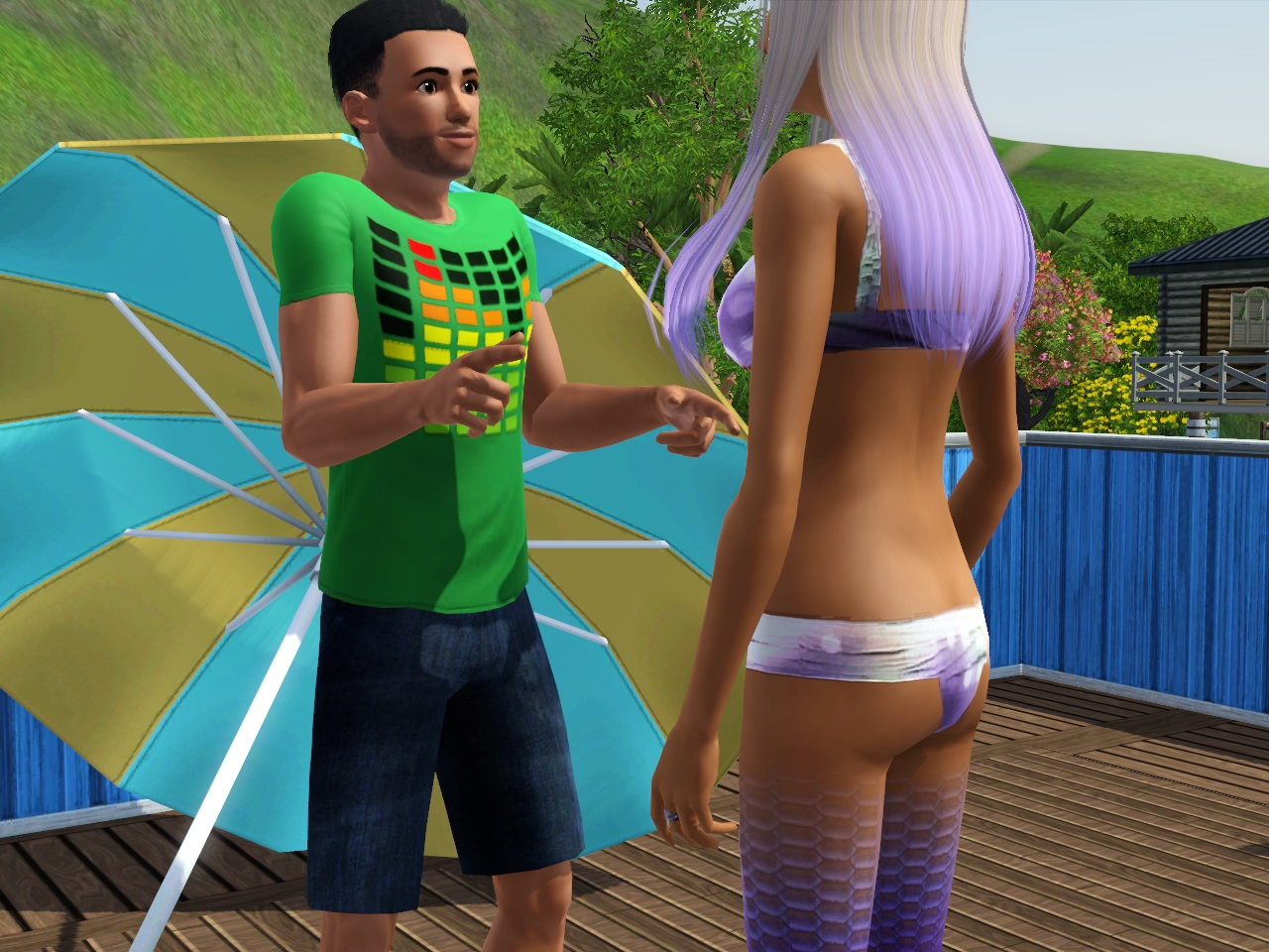 She was the mermaid he saw, the tips of her tail were blue as was her skin, so I ended up editing her in CAS because I wanted her to look more human when she walked on land. :) Harbor was just as curious as Maya was, so he decided the best thing to do would be let her explain herself.