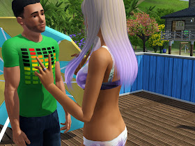 She was the mermaid he saw, the tips of her tail were blue as was her skin, so I ended up editing her in CAS because I wanted her to look more human when she walked on land. :) Harbor was just as curious as Maya was, so he decided the best thing to do would be let her explain herself.