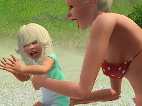 "Oh, stop it." She playfully pushed water back at me, while Phoebe stared intently at her pinkie toe. She dipped it in the water, pulled it  out, dipped it back in, and so fourth.