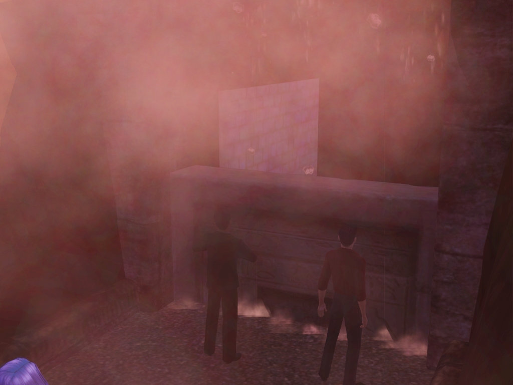 "Oh... well, it is Vegas." He chuckled. "Come on." I followed him, curious about where he was leading us. The first glaring detail about the room was the apparent smokiness and orange gobo lights that flooded the room with a peculiar tint.