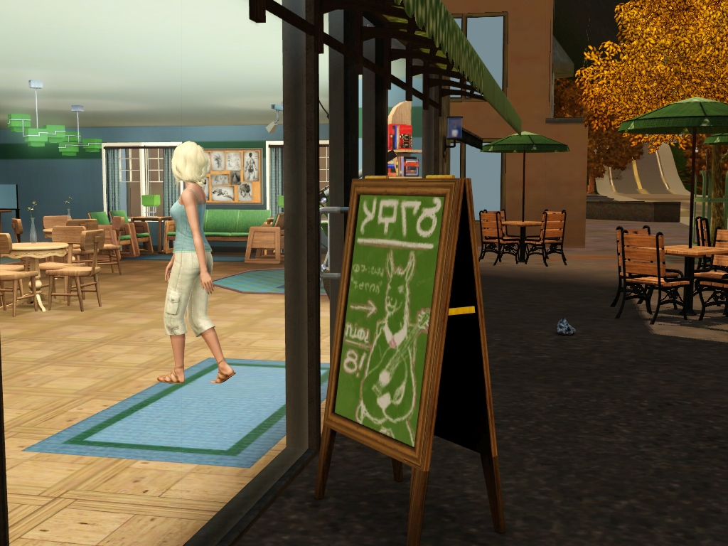 "I'll go to the coffee shop." I decided aloud, as I walked down the brightly lit street, enjoying the warm sun on my skin and the quiet midmorning lull.