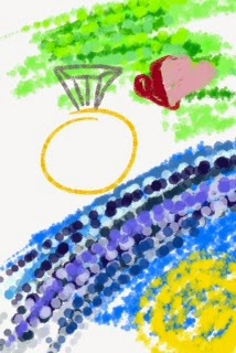 "I'm glad." He beamed, leading me to the next painting. Chaotic striped of blues, teals, and magentas covered the canvas, a sloppily drawn berry red heart covering the feathered face of someone wil blonde hair and mint eyes. "Entitled You, same artist."